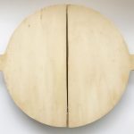 Door de twee halve cirkels tegen elkaar te leggen ontstaat er een schep met een doorsnede van 29 cm. Dit is iets kleiner dan de stenen die in onze oven liggen. Deze leggen wij dan op een bord om zo de pizza gemakkelijker op te pakken en in de oven op de steen te plaatsen.